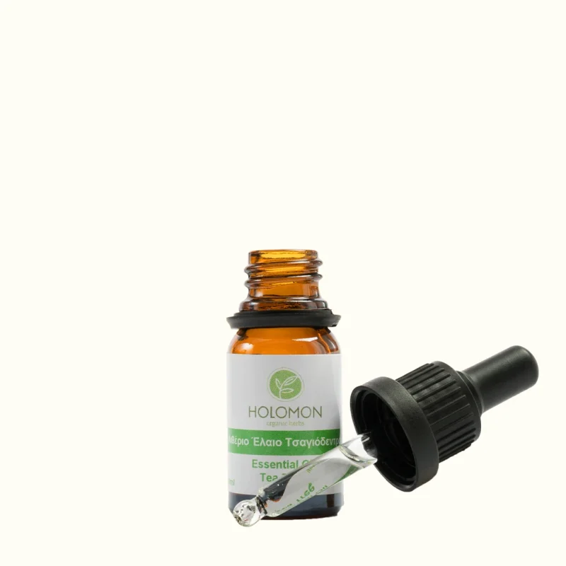 Das ätherische Teebaumöl ist ein erdiger, frischer, holziger Duft, der aus den Blättern des Baumes Melaleuca alternifolia Cheel gewonnen wird, der für seine Wirksamkeit gegen Infektionen der Atemwege bekannt ist, aber auch eine starke antimikrobielle Wirkung gegen Bakterien, Pilze und Viren hat. Es wird als antiseptisches, antibakterielles und entzündungshemmendes Mittel zur Bekämpfung von Akne und Pilzinfektionen an Füßen und Händen, Vaginitis, Herpes, Insektenstichen, aber auch als Deodorant verwendet, da es den Geruch neutralisieren soll. Es hilft auch bei trockener Kopfhaut, indem es die Schuppenbildung reduziert und bei der Behandlung von Kopfläusen.