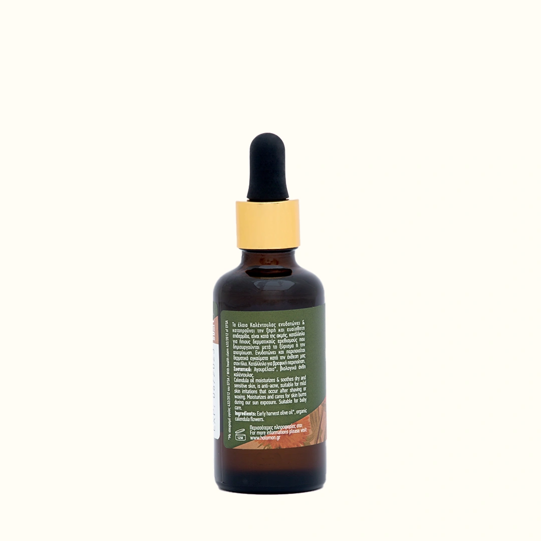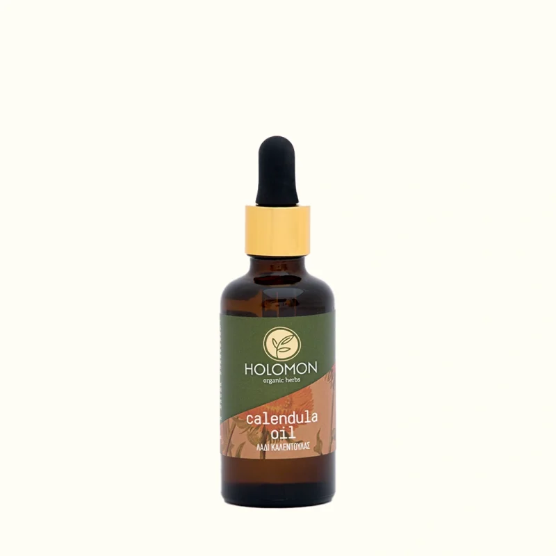 HOLOMON Bio-Kräuter-Calendula-Öl wird durch das Eintauchen frischer Bio-Calendula-Blüten in säurearmes natives Olivenöl extra gewonnen. Calendula-Öl wird nach der traditionellen langsamen Methode gewonnen, da es fast zwei Monate dauert, bis die Extraktion des Öls abgeschlossen ist. 100% Naturprodukt. Ohne Konservierungsstoffe, Farbstoffe, künstliche Aromen und genetisch veränderte Zutaten.