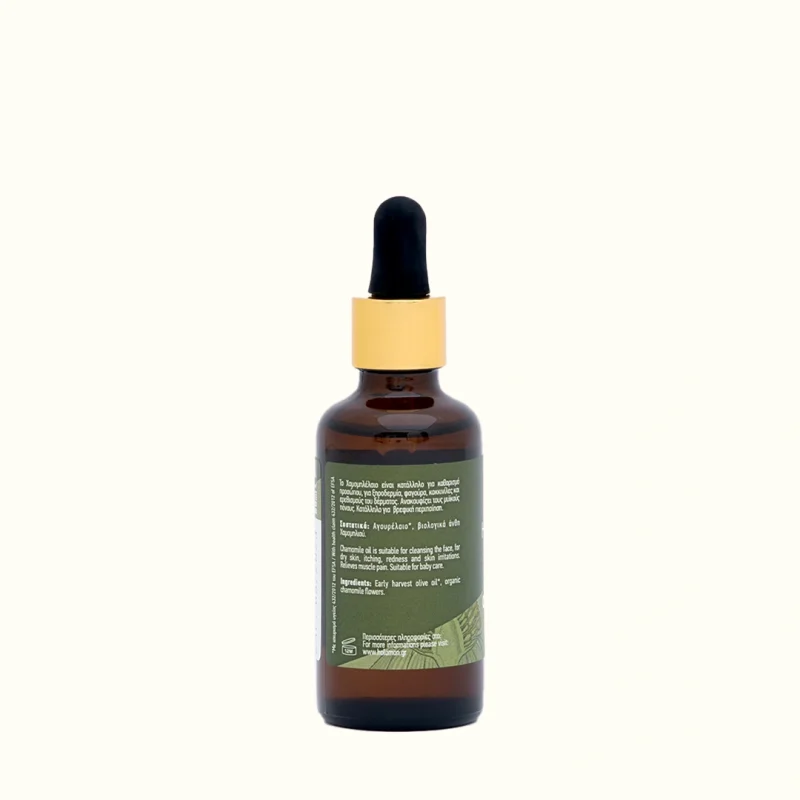 Das Kamillenöl wird durch das Eintauchen frischer Kamillenblüten (aus biologischem Anbau) in natives Olivenöl extra (mit niedrigem Säuregehalt) gewonnen. Es wird nach der traditionellen, langsamen Methode hergestellt, da es fast zwei Monate dauert, bis die Extraktion des Öls abgeschlossen ist. 100% Naturprodukt. Ohne Konservierungsstoffe, Farbstoffe, künstliche Aromen und genetisch veränderte Zutaten.