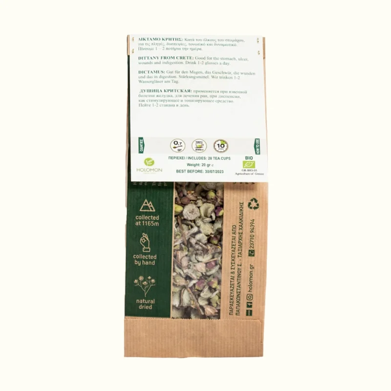 Organic Dittany from Crete is considered suitable against stomach ulcers, for wounds, indigestion. It is also tonic and energizing.