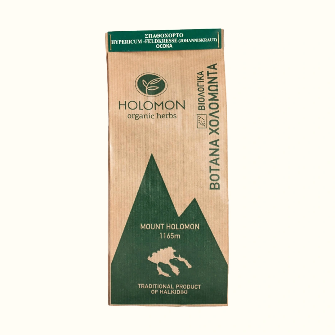 HOLOMON organic herbs’ Organic Hypericum is collected from Mount Holomontas in the months of May-June a few days after its full bloom at an altitude of 884m – 1030m. The selection of herbs is based on their growth stage. We always collect those parts of the plant that are suitable for the creation of the products, but without inactivating its growth. The suitable stems are harvested by hand and then dried in specially designed natural drying areas, without the use of environmental machinery.