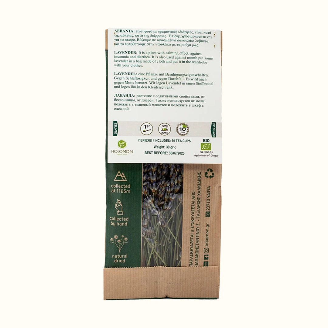 HOLOMON organic lavender is collected from Mount Holomontas in the month of June during its full bloom at an altitude of 884m. The selection of herbs is based on their growth stage. We always collect those parts of the plant that are suitable for the creation of the products, but without inactivating its growth. The suitable stems are harvested by hand and then dried in specially designed natural drying areas, without the use of environmental machinery.