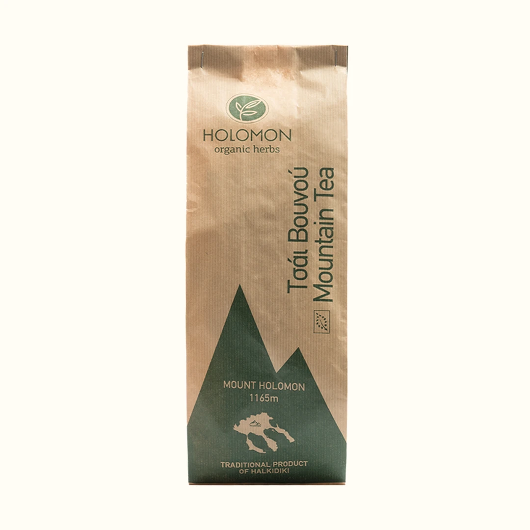 HOLOMON organic herbs’ organic Mountain Tea is collected from Mount Holomontas in June during the full bloom at an altitude of 884m.The selection of herbs is based on their growth stage. We always collect those parts of the plant that are suitable for the creation of the products, but without inactivating its growth. The suitable stems are harvested by hand and then dried in specially designed natural drying areas, without the use of environmental machinery.